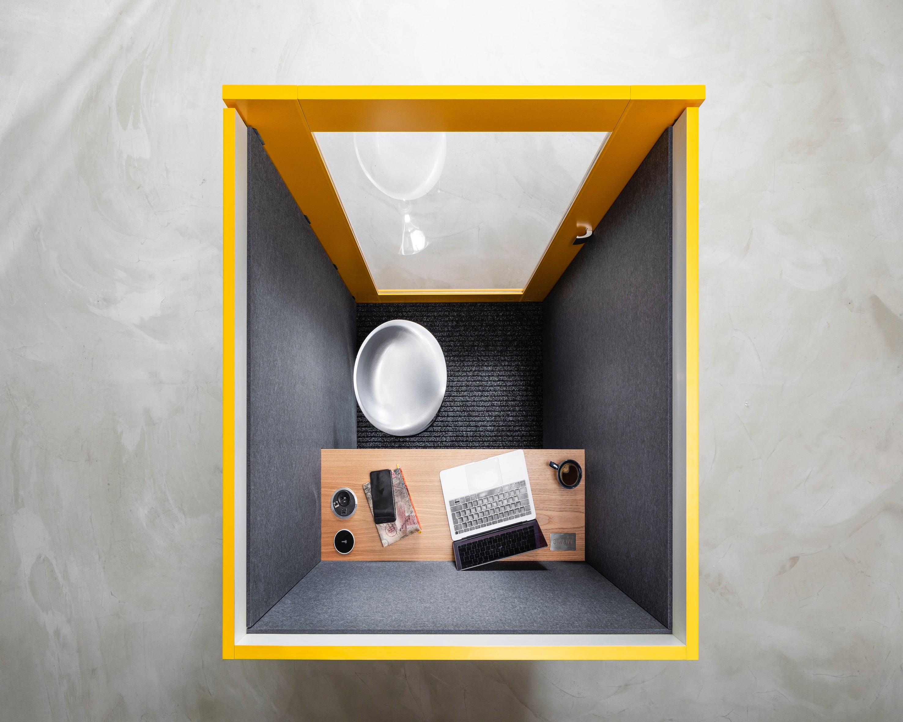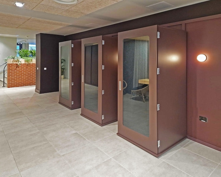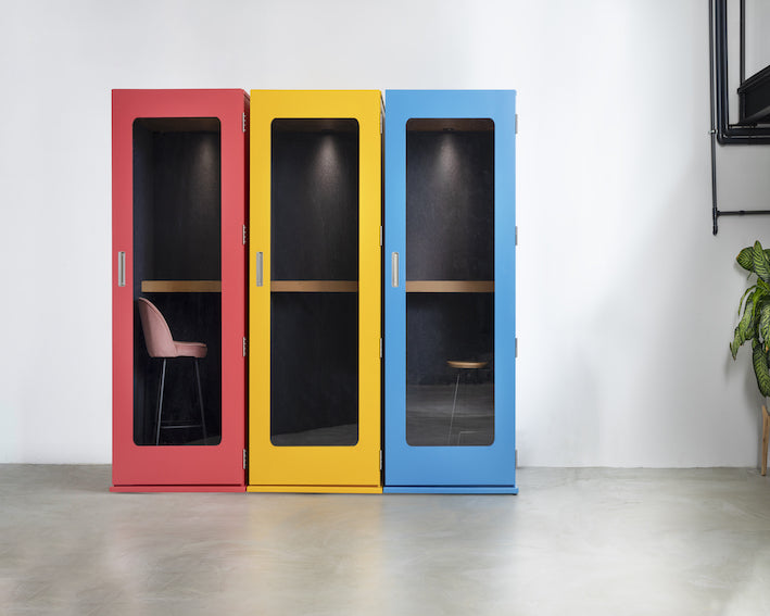 Telefonbokse. 2RETHINK er stolt den danske importør af MEAVO telefonbokse til kontorer. Telefonboksen er prissat ret billigt uden mellemled. Designet i London, produceres på møbelfabrik i EU men bla. med danske komponenter fra Siso i Skovlunde. Bokse kan leveres i 34 flotte pantone farver uden merpris. Akustikfilten inde i boksen er produceret af mere end 800 brugte plastikflasker. (PET). Blandt vores kendte kunder i Danmark finder du eks. Google, Egmont og Mikkeler.  Telefonboksen bruges naturligvis til at give en person ro til at føre en diskret samtale og skabe lidt ro på storrumskontoret og undgå at forstyrre kollegaer med private eller fortrolige samtaler.