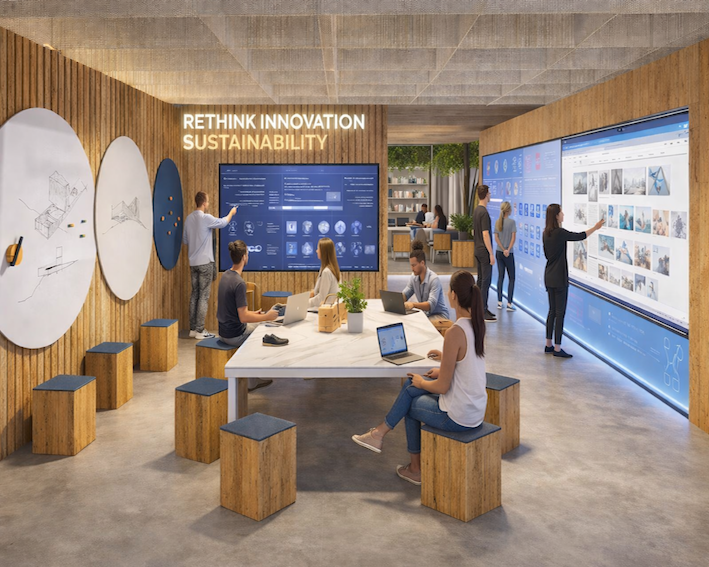 Gentænk kontorets rum er 2RETHINKs kontorindretnings koncept til virksomheder, der enten sidder fast i klassiske kontoropstillinger med hæve-/sænkeborde og lukkede mødelokaler – eller står med tomme kvadratmeter, som ikke bliver brugt rigtigt.