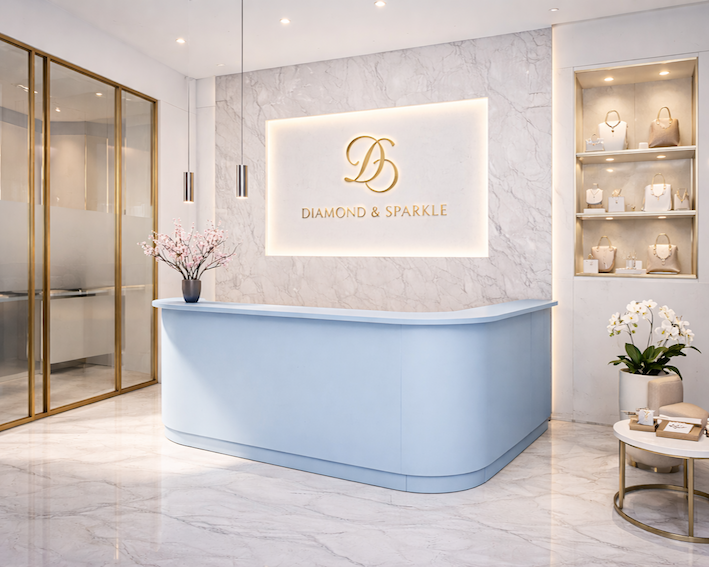 Udgangspunktet er et gennemtestet modulært skrankesystem med bløde, buede hjørner og en rolig, professionel geometri. Herfra tilpasses hver skranke individuelt i tæt dialog med kunden. Dimensioner, farver, materialer og detaljer justeres, så skranken passer præcist til rummet, brandet og den måde, den bruges på i hverdagen.