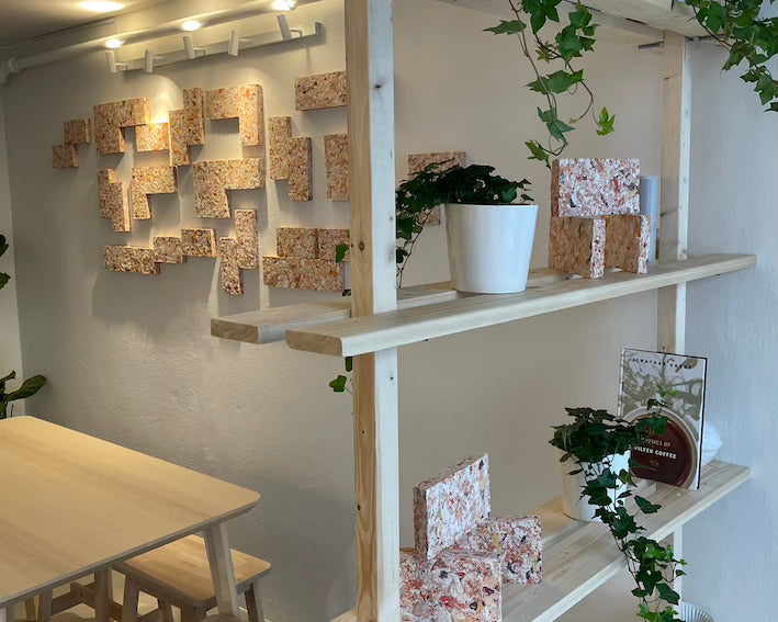 Fliser / mursten af genbrugstekstiler. Oplagt til tøjbutikker mfl.