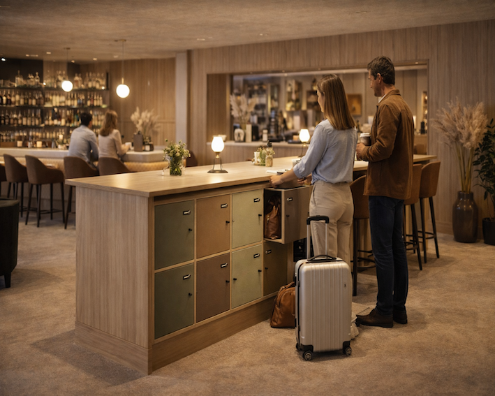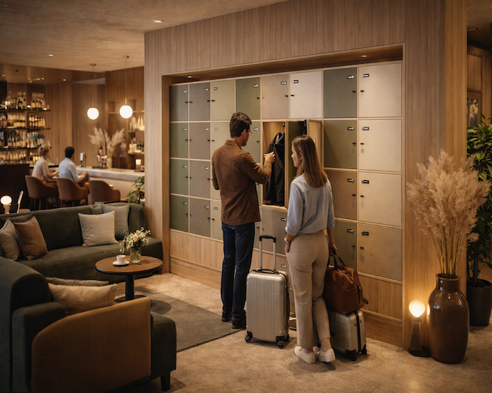 Sikringen er intuitiv og diskret. Brugeren låser sine ejendele væk og kan bevæge sig videre – ind i mødet, middagen, kampen eller opholdet – uden forstyrrelser. Lockerværk understøtter netop det øjeblik, hvor tempoet skifter: fra arbejde til aften, fra aktivitet til ro, fra ankomst til ophold.